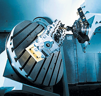 五軸聯(lián)動機(jī)床有立式(圖4)、臥式(圖5)和搖籃式(圖3)二軸NC工作臺,NC工作臺 NC分度頭(圖6),NC工作臺 90°B軸 (圖7),NC工作臺 45°B軸(圖8),NC工作臺 A軸(圖9),二軸NC 主軸(圖10)等類型。